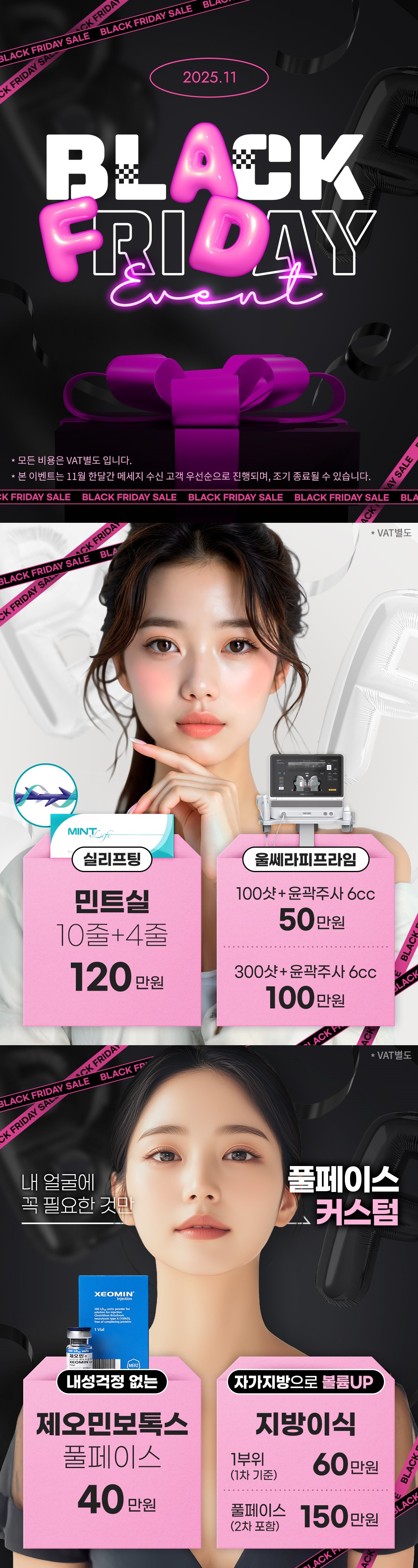 성형수술 및 시술은 환자 개인에 따라 효과가 다를 수 있으며, 출혈, 감염 등의 부작용이 발생할 수 있습니다.