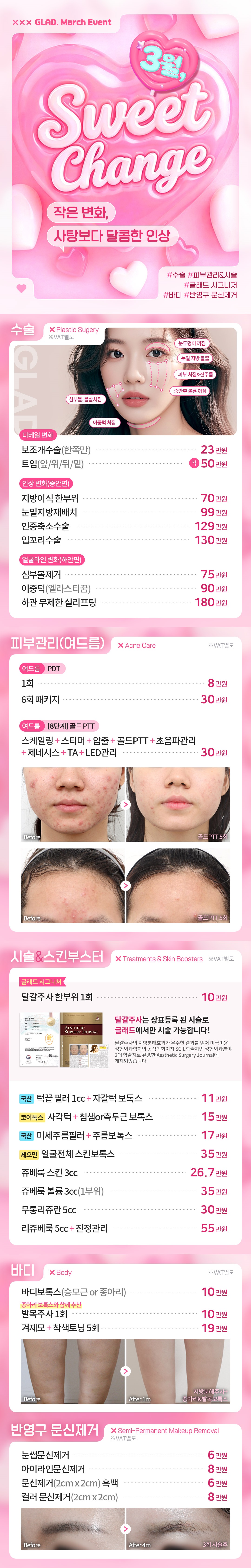 성형수술 및 시술은 환자 개인에 따라 효과가 다를 수 있으며, 출혈, 감염 등의 부작용이 발생할 수 있습니다.